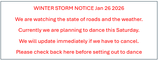 Dec 14: Juliette Webb with Southwind. This is our annual Holiday dance - please bring a dessert to share at the break if you are able.
